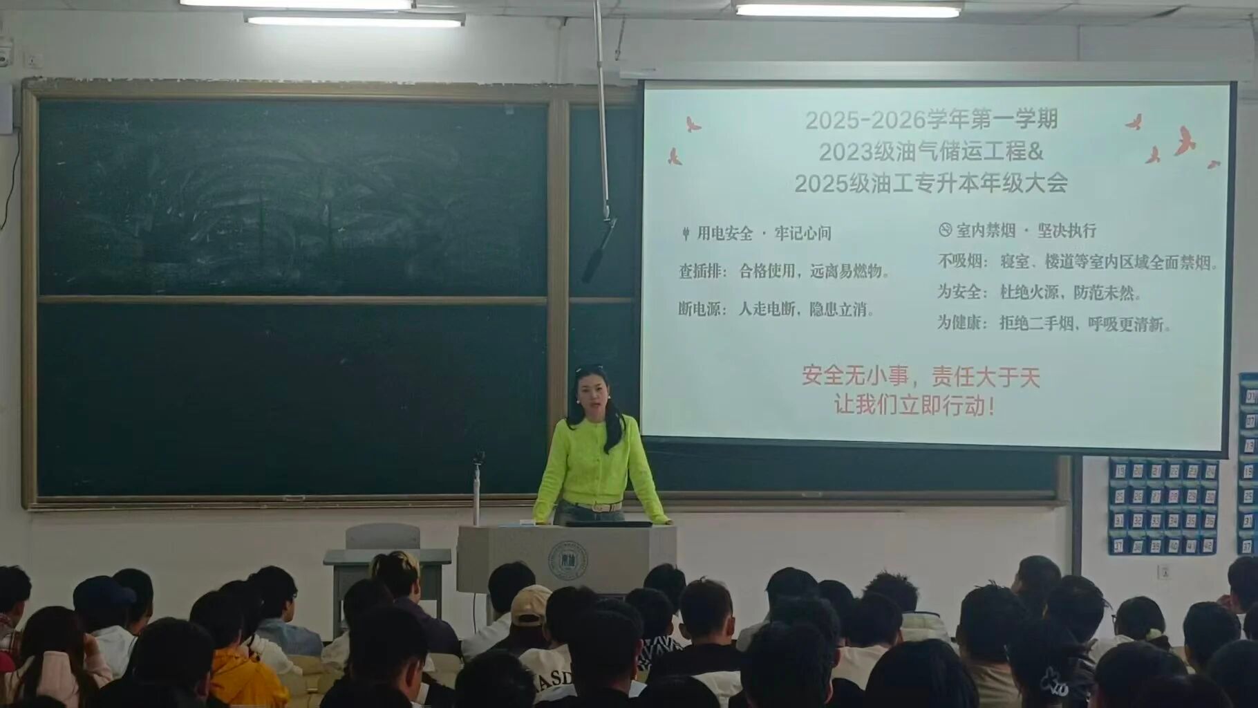 毕业年级聚焦“三率”提升作为本学年重点工作。 辅导员唐秀明在会上指出,2022级同学应密切关注就业动向与行业需求,不断提升实践能力,以在应聘中脱颖而出。同时,她也鼓励同学们积极准备进一步的学习深造,既为个人成长积累学业知识,也为国家能源事业发展贡献青春力量。