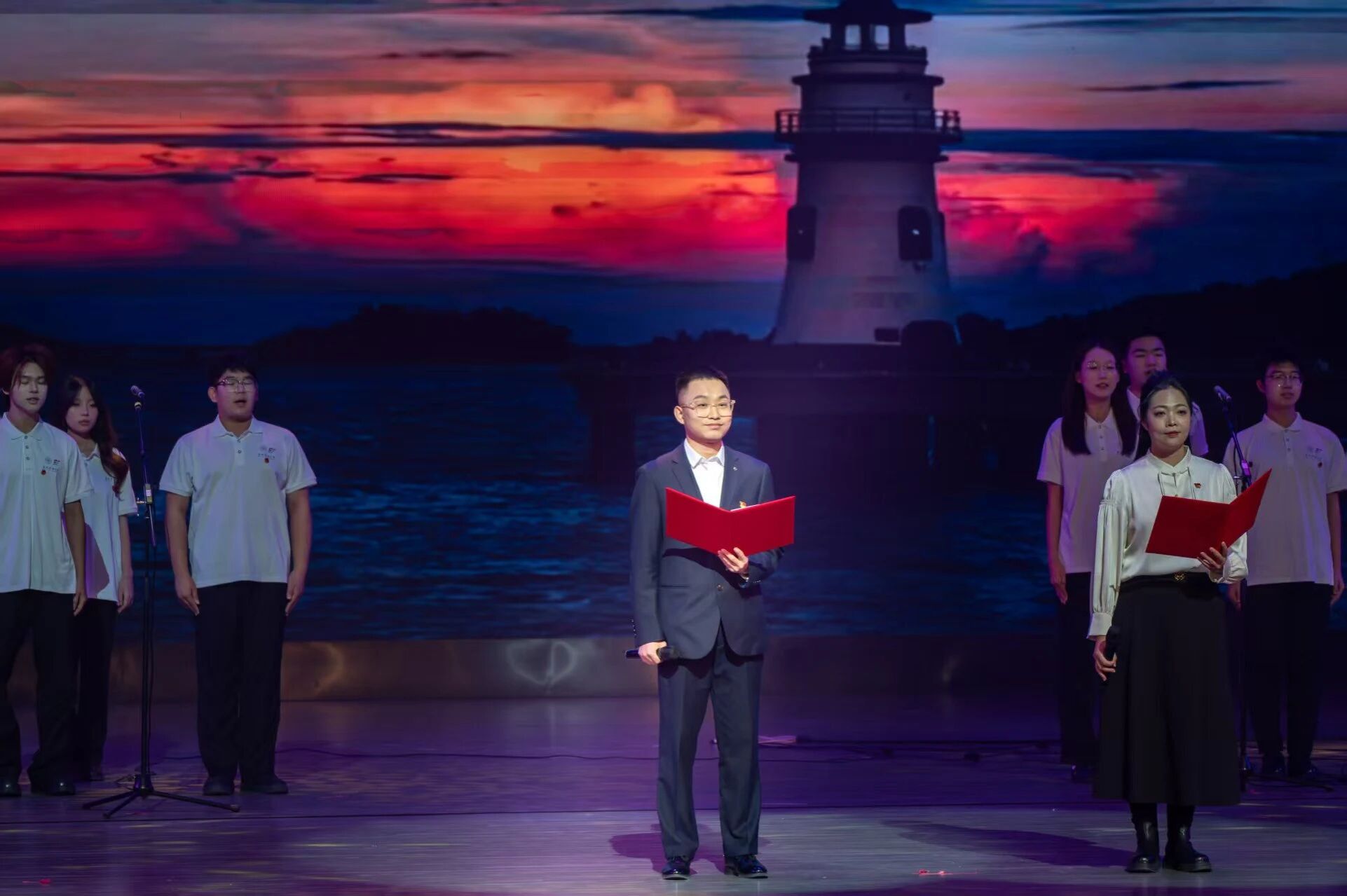 琴筝交响,逐梦笃行。来到第二篇章,来自小提琴、古筝等乐器的婉约悠扬响彻在音乐厅内,动人的旋律将传统乐器与现代舞台巧妙结合,传统文化的独特魅力由此展开。随后,由25级辅导员孟雨新、黄锦石携2025级新生带来的诗朗诵《灯塔》在深情朗诵中寄语新生勇敢追梦,老师们会如灯塔一般领航前行,护航成长。