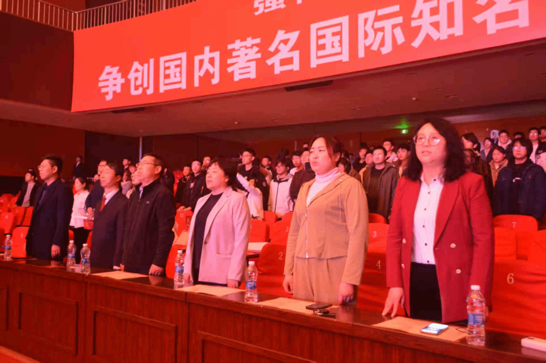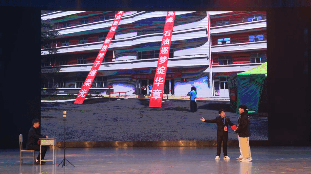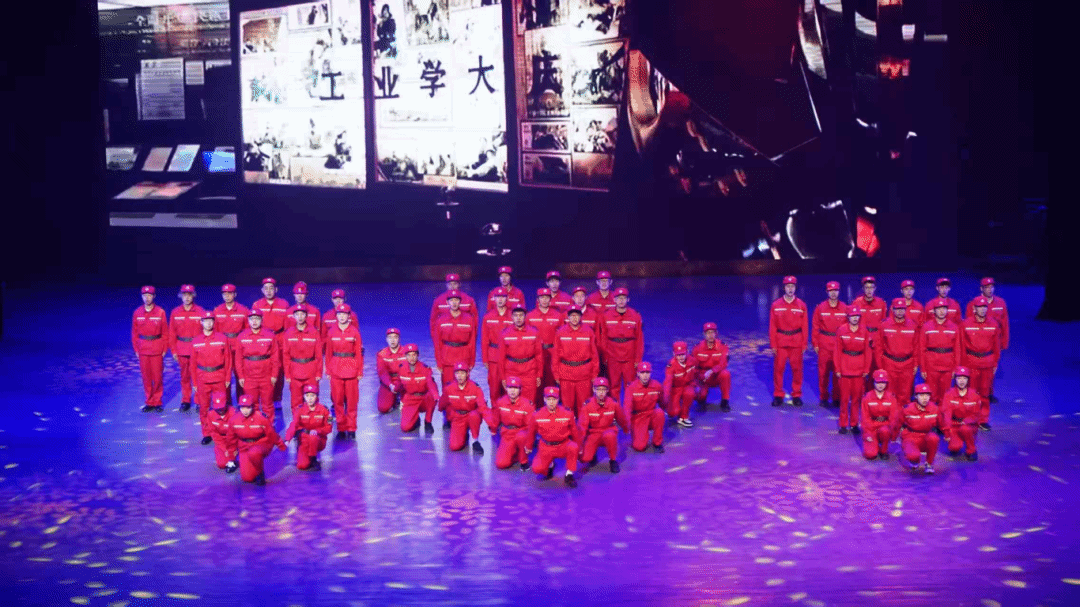 铁人精神融新志,油魂铸梦共奋斗。诗意柔韵落定之后,热血的鼓点再次在舞台响起。话剧《平凡的人》、情境合唱《石油魂》与情景诗颂+枪操表演《五星红旗我为你骄傲》融入铁人意志,以东油精神铸魂筑梦。演出最后,全场师生起立齐声歌唱《踏着铁人脚步走》。