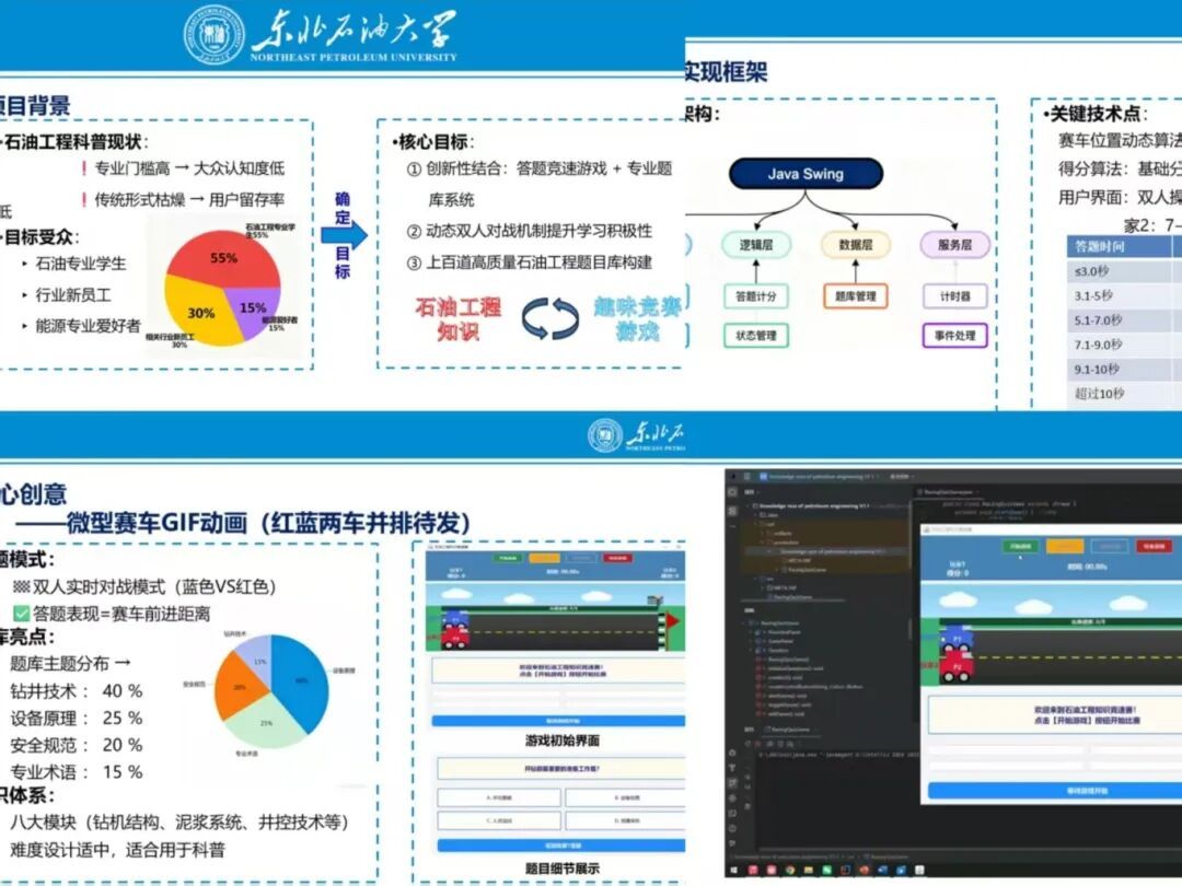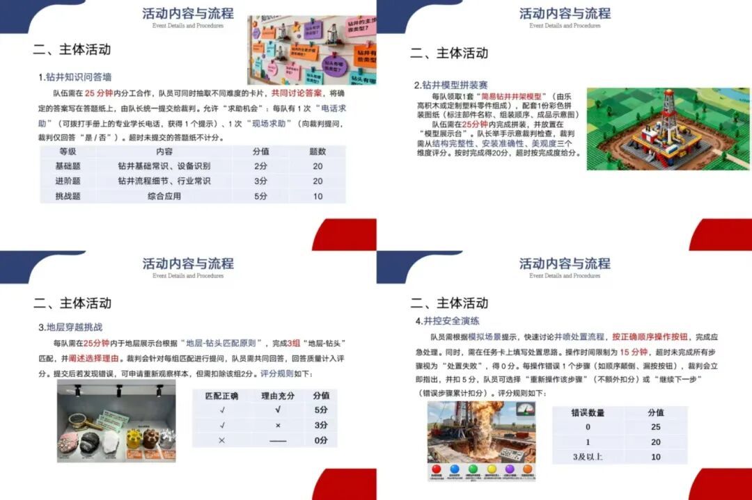 决赛现场,参赛选手们结合自身专业背景,围绕石油科普主题展开了形式多样、内容丰富的创意展示。大家将石油专业知识巧妙融入各类互动形式中,包括电脑小游戏、趣味竞赛、手工制作以及模拟开采实验等,把抽象复杂的科学原理转化为生动有趣的科普体验。