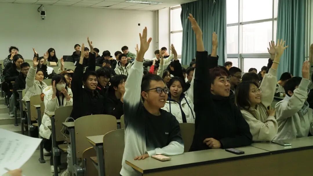 活动中,参加的学生聚精会神的观看现场PPT所呈现的题目,通过举手争夺答题权。题目围绕着传统礼仪文化展开,以竞答的形式为载体,引导同学们在答题比拼中主动探寻、系统掌握传统礼仪知识。抢答环节里手臂如林,此起彼伏的应答声让现场热度持续攀升。