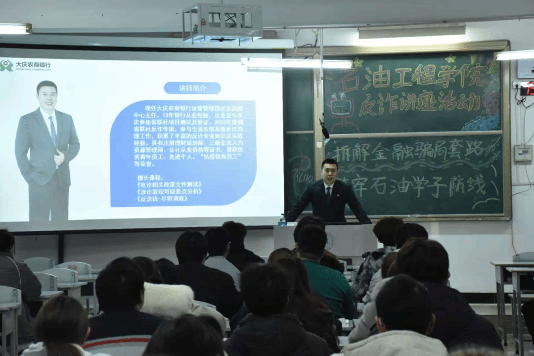 为切实提升学生防范电信网络诈骗能力和安全意识,守护好学生财产安全,石油工程学院于11月14日举办防范电信网络诈骗专题讲座。学院特邀大庆农商银行反诈治理中心主任王鑫担任主讲,院团委书记李琳琳出席并主持会议,学院近百名学生参加讲座。