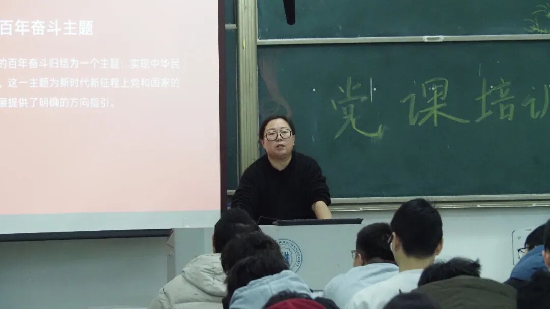 11月28日,学院党委副书记陈微以“中国共产党的指导思想”为题,为全体学员作专题辅导。她系统阐述了马克思主义中国化的历史进程与深刻内涵,详细讲解了毛泽东思想、邓小平理论、“三个代表”重要思想、科学发展观以及习近平新时代中国特色社会主义思想的发展脉络与时代价值。陈微强调,党的指导思想是党和国家事业不断前进的根本遵循与行动指南,鼓励积极分子在学习和实践中深入理解,做到内化于心、外化于行。。辅导员杨雯博以“党的光辉历程”为主线,带领学员们重温了中国共产党从创立到发展壮大的伟大征程。她通过“两弹一星”研制、恢复联合国合法席位等标志性重大成就,深刻阐释了党的奋斗历程,激励学员们要从波澜壮阔的党史中汲取智慧与力量,不断增强“听党话、跟党走”的思想自觉与行动自觉,以实干担当践行新时代青年的初心使命。