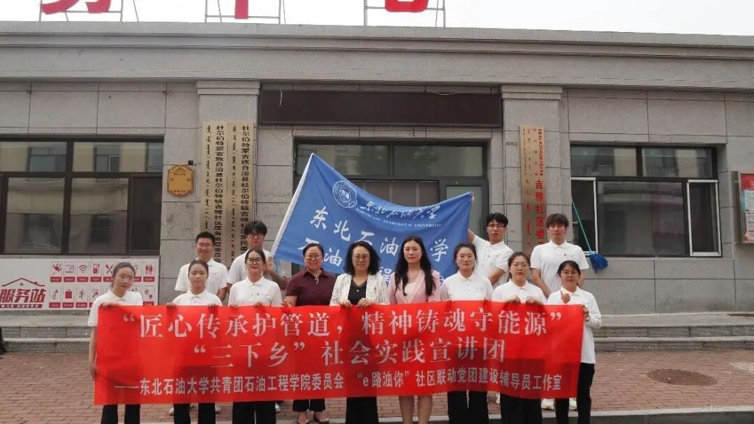 以知行合一深入社会实践,石油工程学院学生在服务奉献中弘扬大庆精神,彰显青年担当。学院全年共计开展社会实践活动63次。在今年暑期开展的“三下乡”社会实践活动中,共有52支队伍,474名学生参与其中,共推荐5个优质队伍,获得2项校级二等奖,1项校级三等奖,石油工程学院获优秀组织单位,打造实践育人新课堂。其中“匠心传承护管道”社会实践宣讲团深入社区进行科普,获得社区一致好评,被大庆市新闻媒体播报。暑期“三下乡”活动圆满结束,充分践行了社会主义核心价值观和马克思主义实践精神。